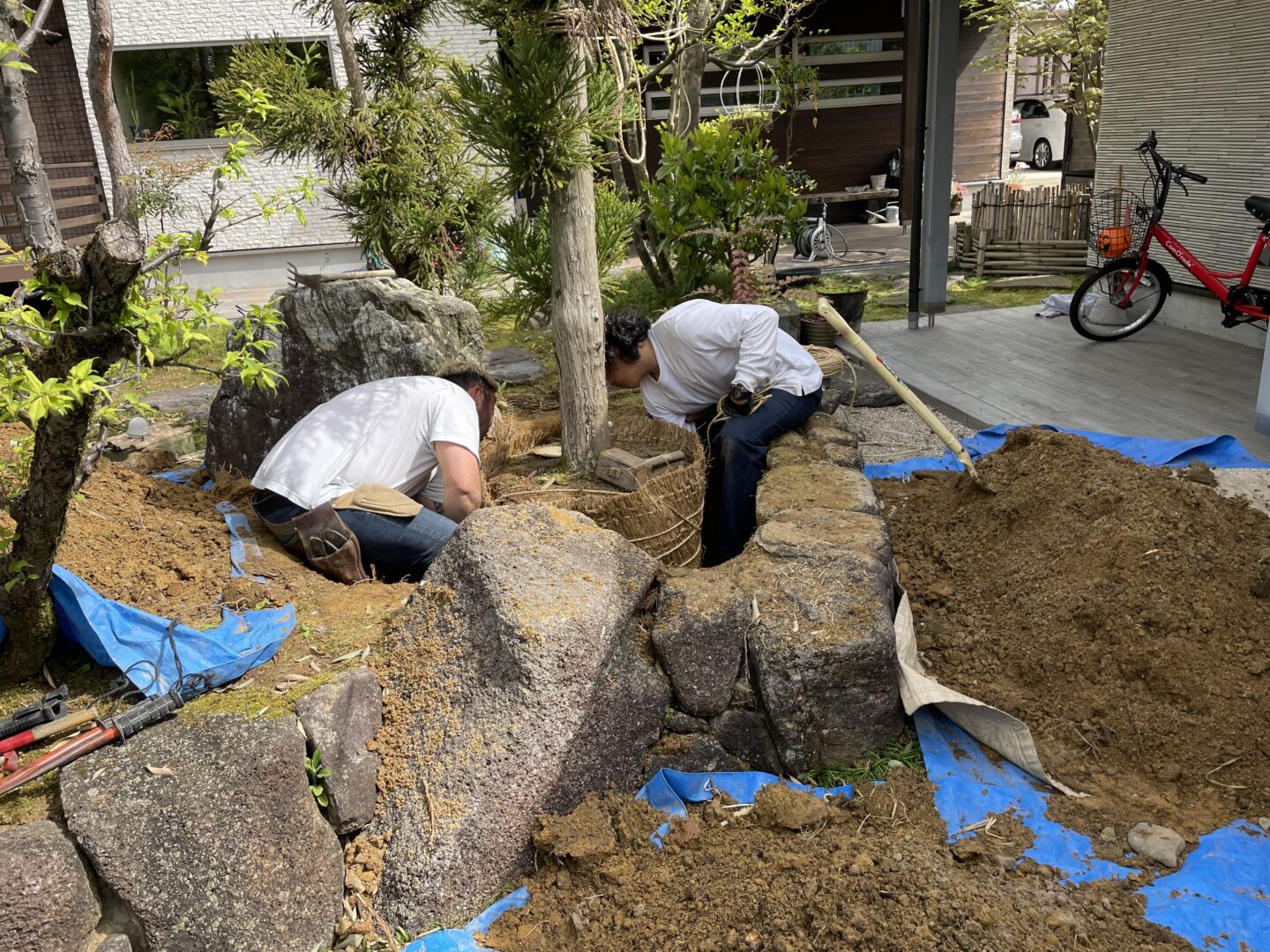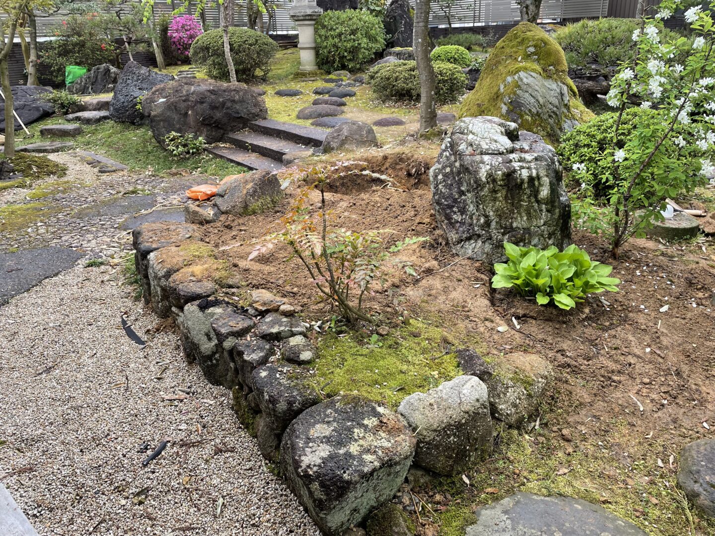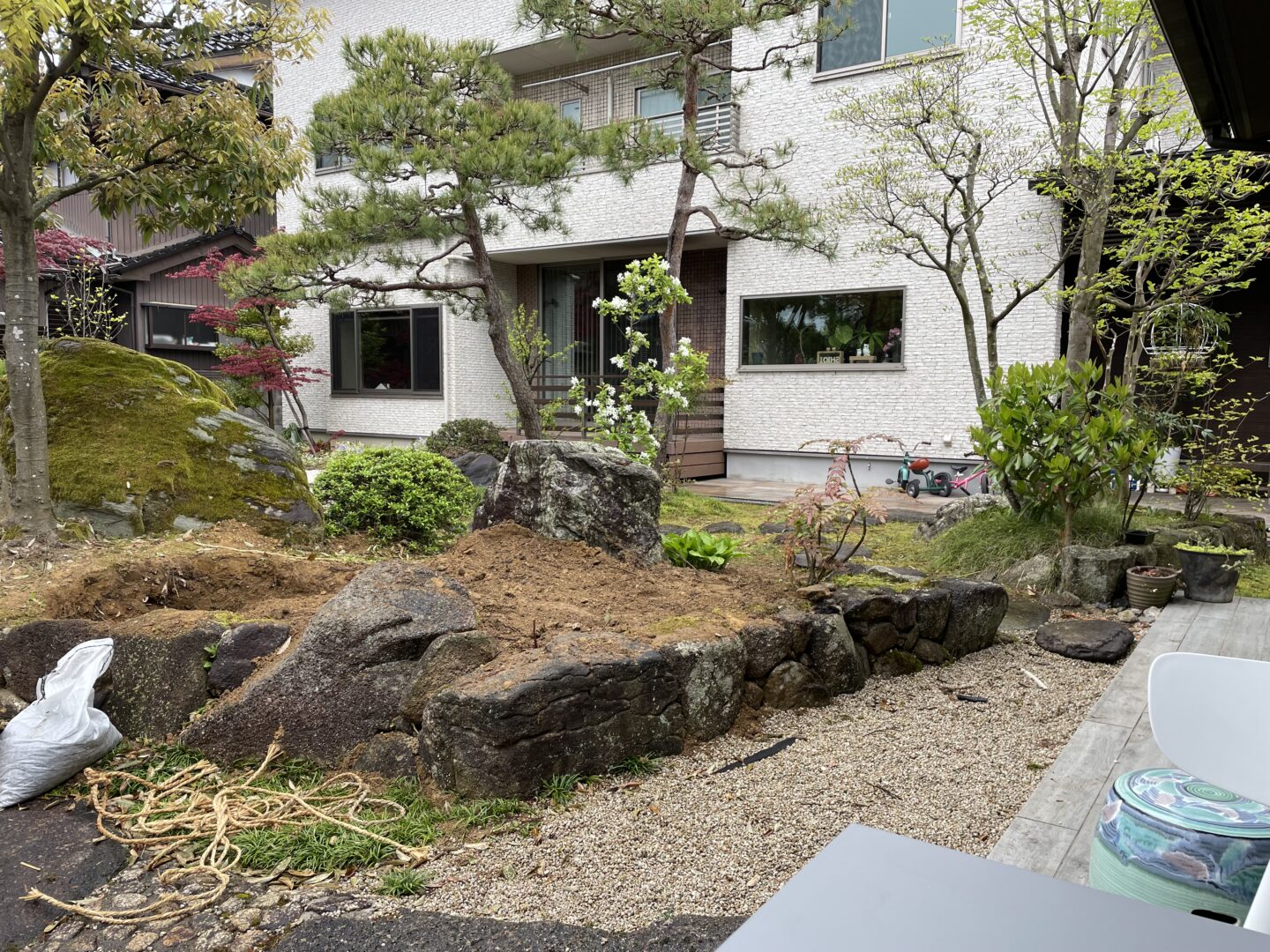 既存のお庭の中に少し休める場所を石積みベンチでつくりました。