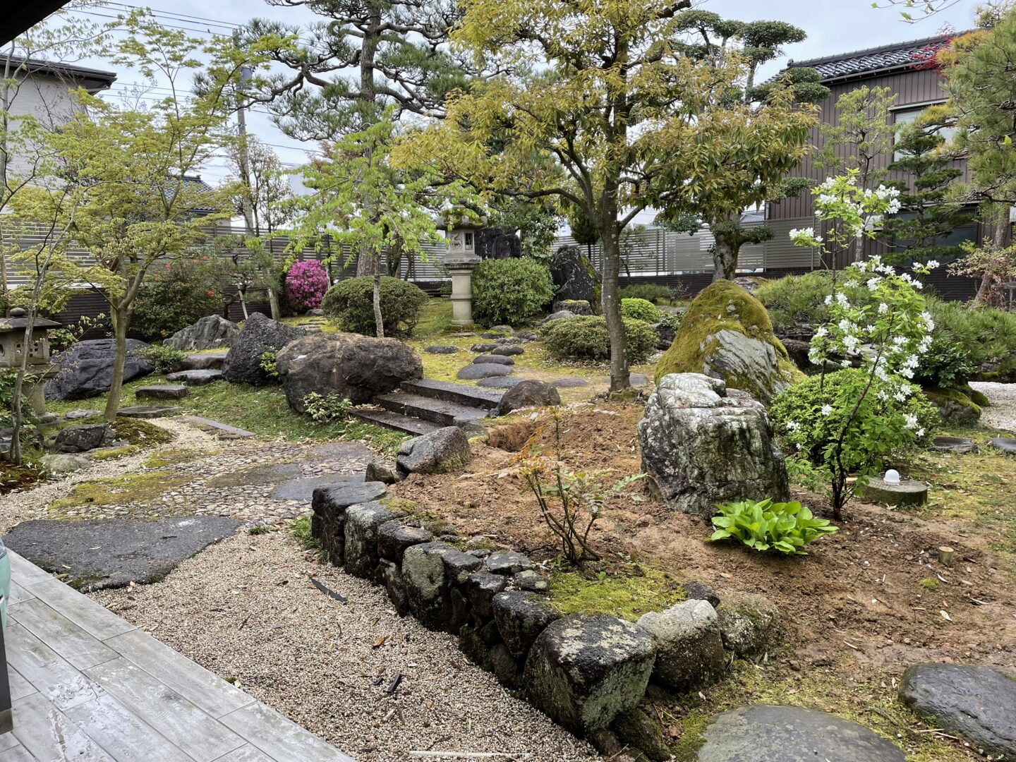 石積みの石は少し石の表情のある戸隠石を使い日本庭園に馴染むようにしてあります。
