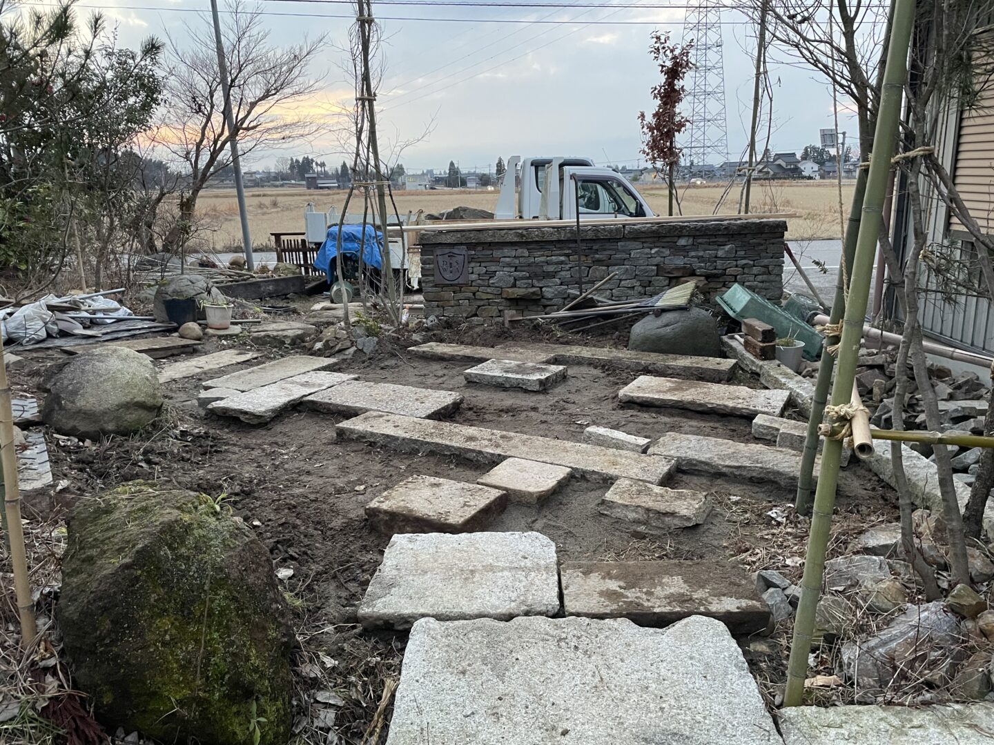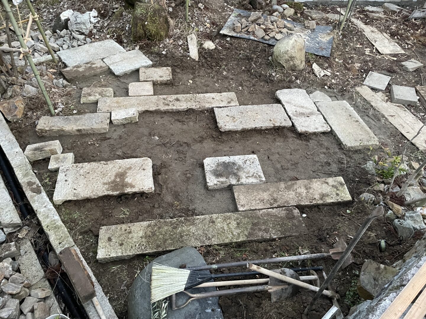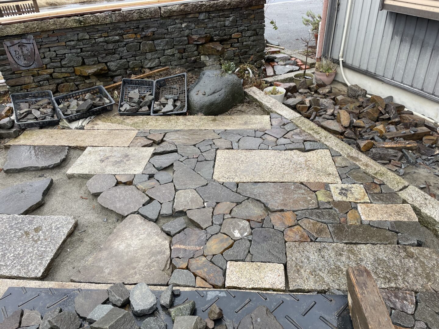 広場的スペースを畳石で仕上げた。こちらは経年風化しても変わらぬ景色でさらにより良い味になってくれてるだろうと思いも込めて自然石を使いました。また手仕事を感じられるこだわりのポイントでもあります。