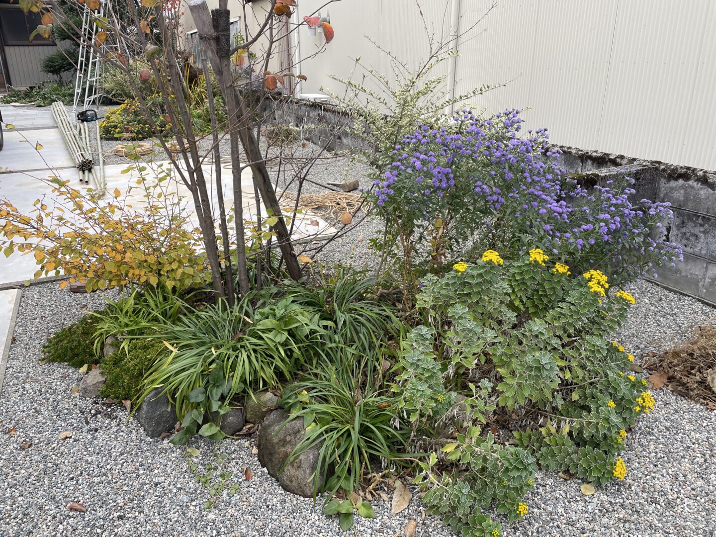 お花が少なくなってくる11月この時期に咲いてくれている宿根アスター、イソギクの組み合わせ