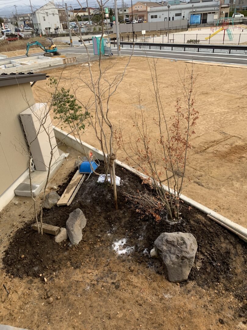 また初めから大きな木を密にして植えるのにも理由があり、植えてからの成長スピードが苗木に比べて緩やかで、密な事で植物の行う光合成も牽制しあいながら育つ事ができます。