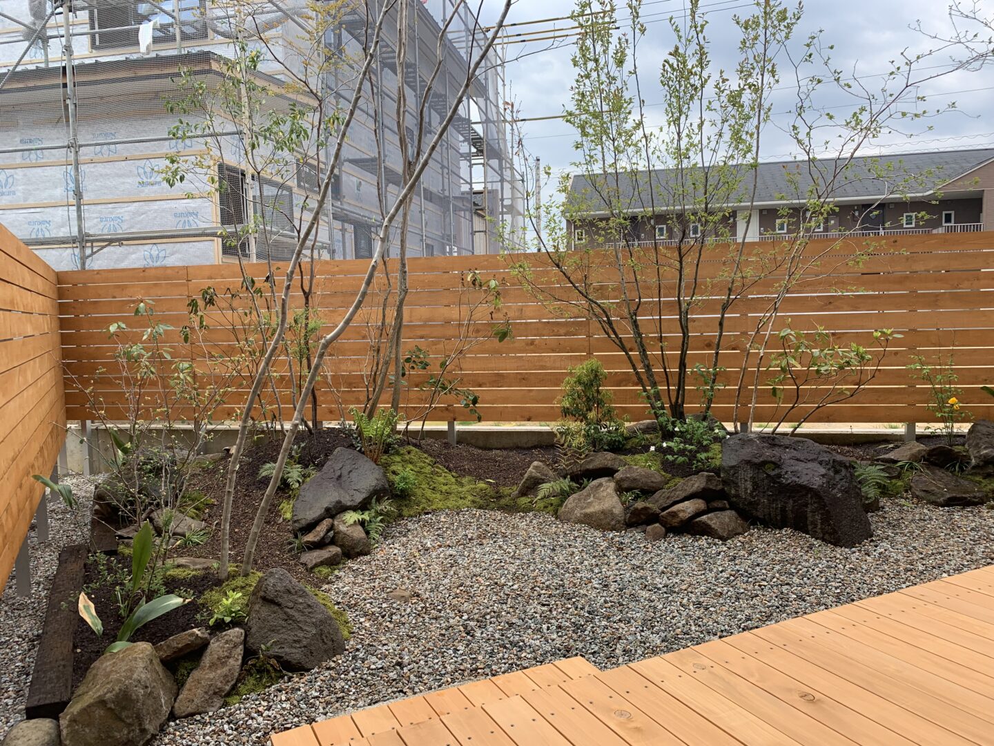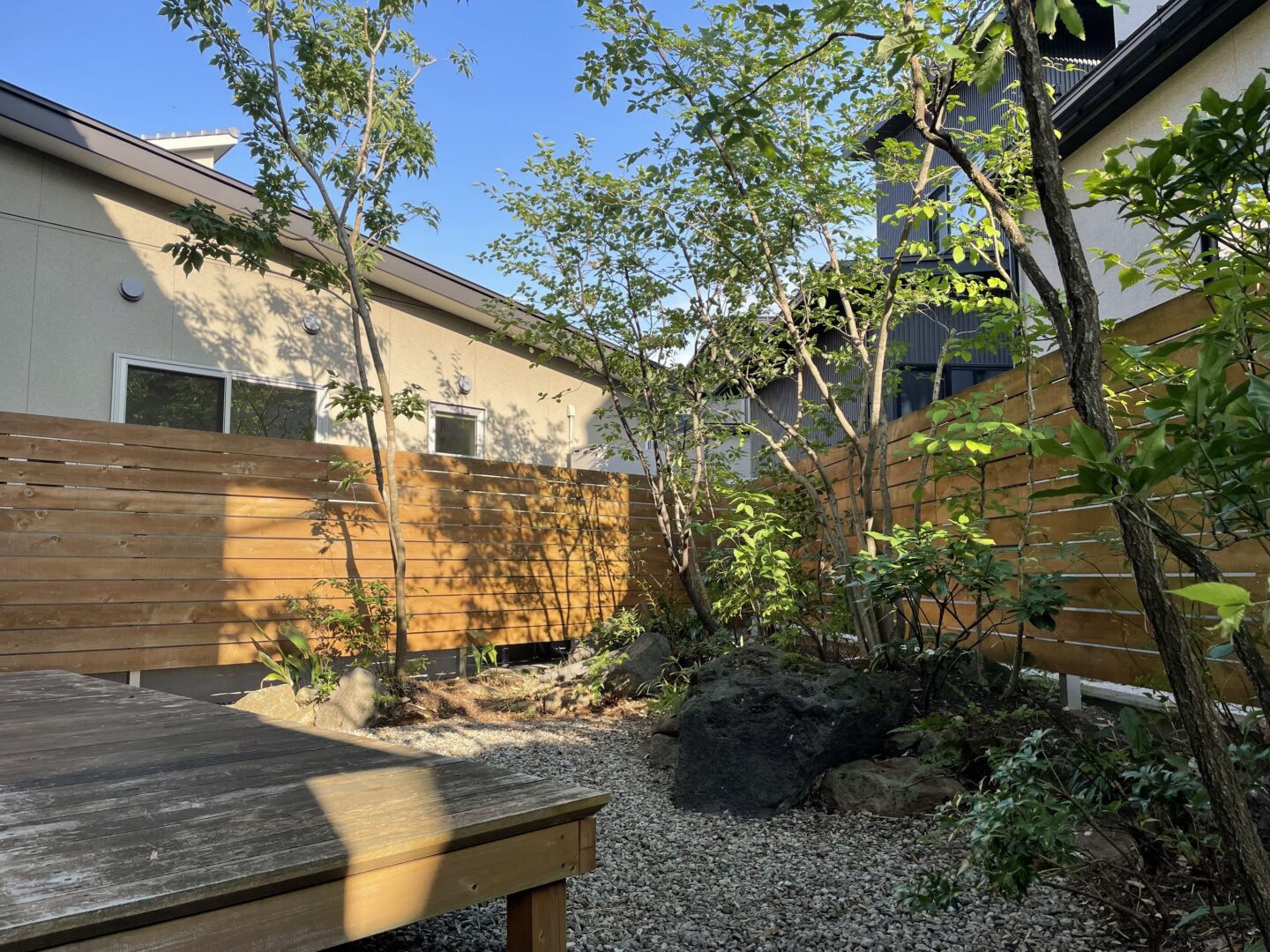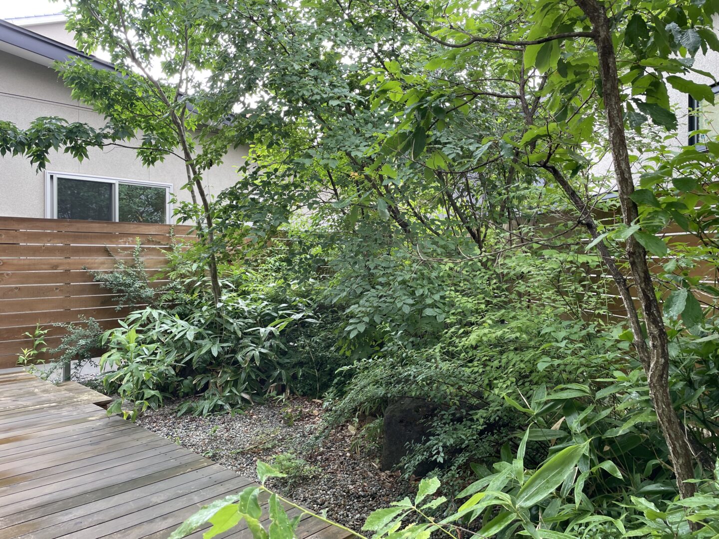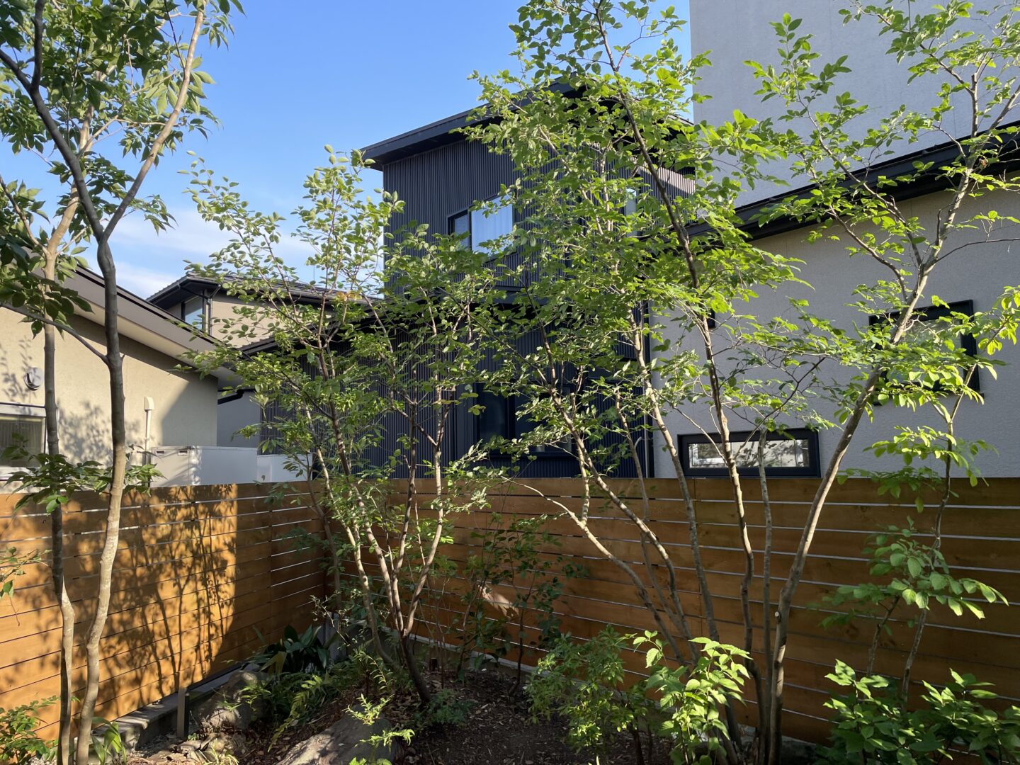 フェンスを高くしようにも限界がある。そんな時に背の高い雑木が目隠しの役目を果たしてくれる。