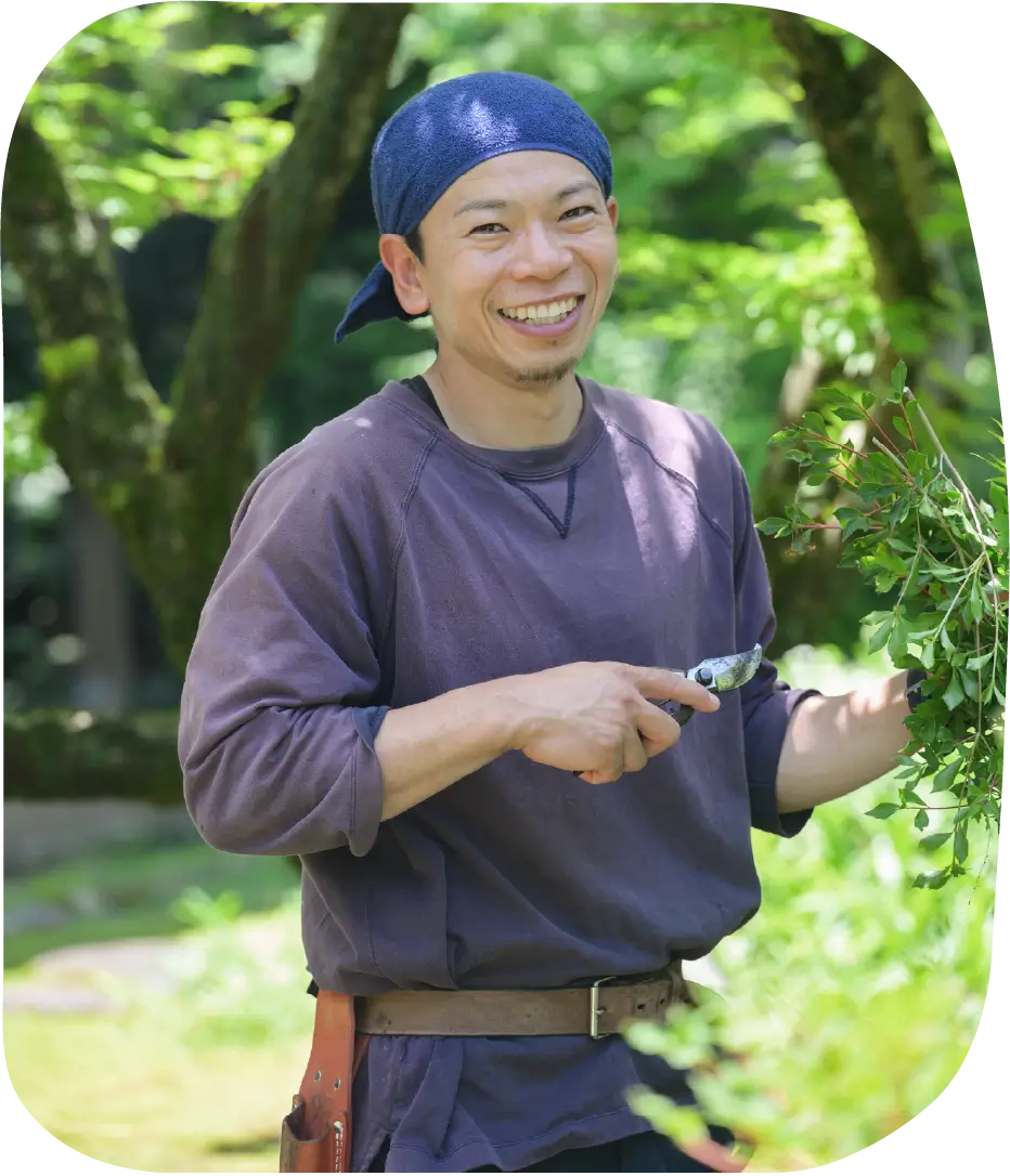 修行時代を過ごした京都と出身地の富山の2拠点で、自然の風景を取り込んだ宿根草と雑木の庭、日本の美意識の詰まった和の庭園、本場イギリスで資格を取得したドライストーンウォーリングの技術を用いた石積みの庭など、さまざまな土地でさまざまな庭づくりに携わらせていただいています。